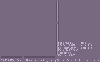 - Bg alignment. In games with 'blocky' levels, like Mario World and Metroid 3, the tiles are distinct and easy to align to. In games like DKC and Super Star Wars though, it is much more difficult to tell just where the seams are. Bg alignment automatically aligns the selected bg to the top left of the screen so that you will be on a whole tile, not half of one. It works especially well for small areas (like one or two screen rooms). Press '9' for the menu.